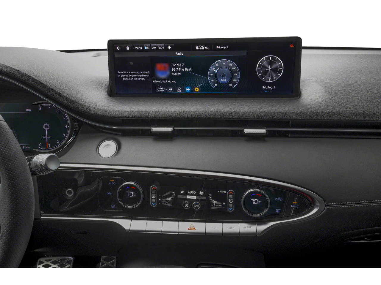 - Radio: 14.5" Navigation System w/AM/FM/HD Radio -inc: SiriusXM radio w/90-day trial subscription (N/A in AK or HI), Android Auto and Apple CarPlay, Genesis Connected Services, Bluetooth hands-free phone & audio streaming system, premium audio w/9 speakers, WiFi hotspot, internal amplifier and USB port