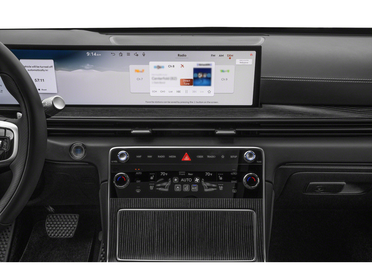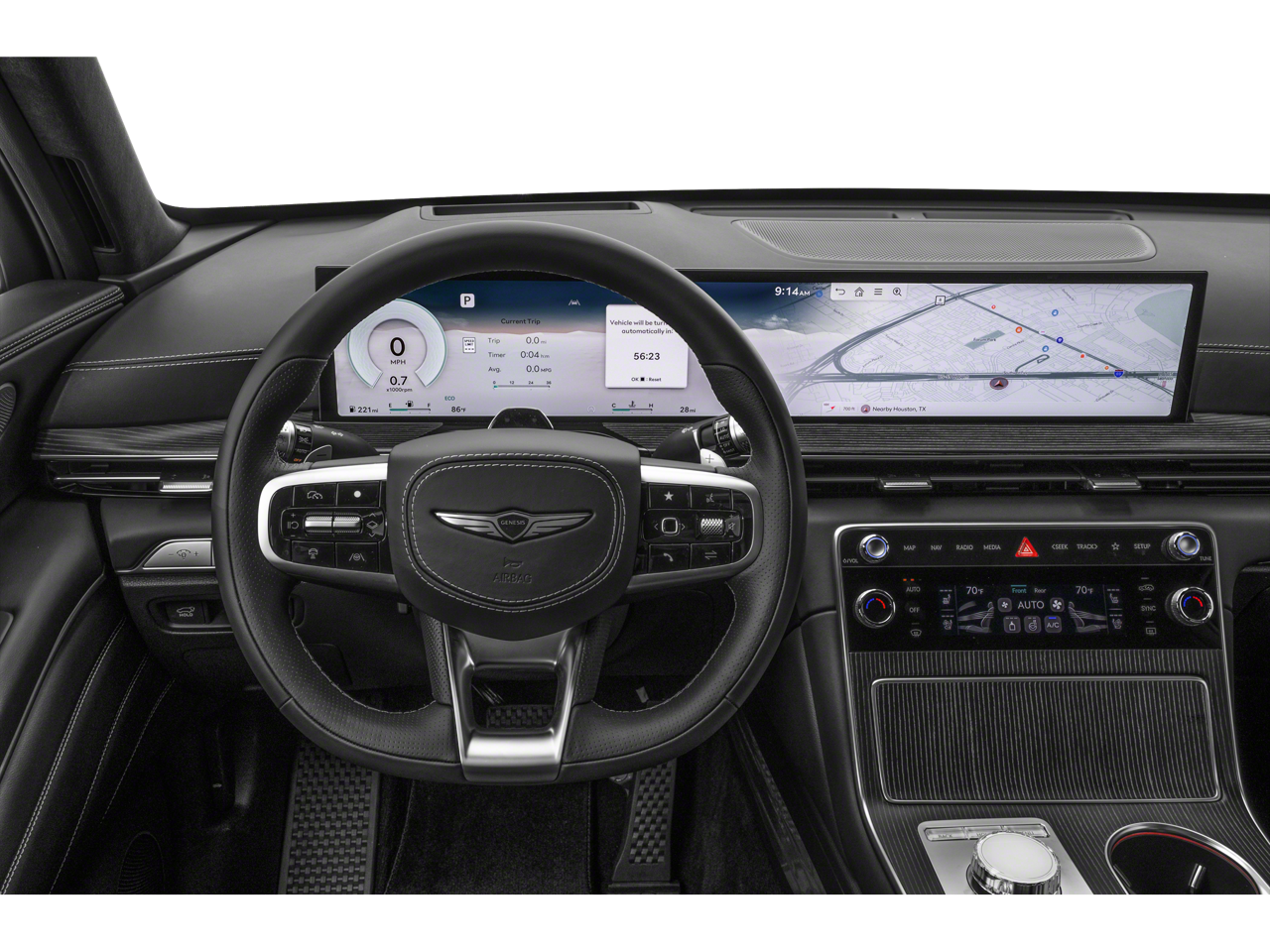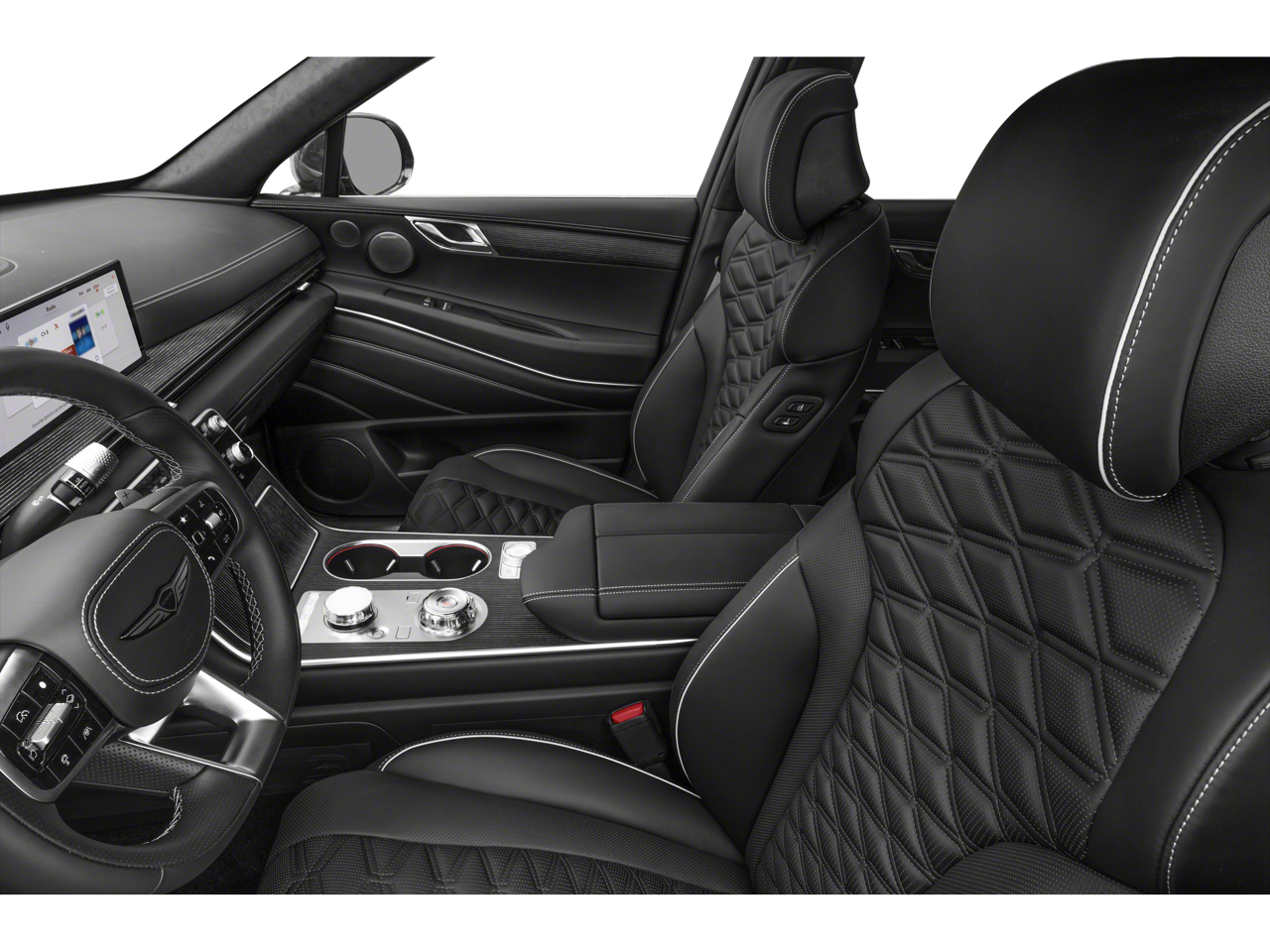 - Radio: AM/FM/HD Bang & Olufsen Premium Audio -inc: 18 speakers, 14-channel amplifier w/1,400 watts max output, 27" integrated OLED screen and navigation system, SiriusXM Radio w/90-day trial subscription (not available in AK or HI), wireless Apple CarPlay and Android Auto, Genesis connected services, Bluetooth hands-free phone and audio streaming system, Wi-Fi hotspot and USB connectivity
