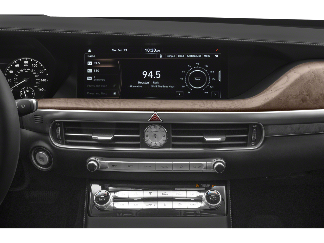- Radio: AM/FM/HD/SiriusXM/CD/DVD Audio System -inc: 900 Watts, 7.1 discrete Quantum Logic surround sound, Lexicon 17-speaker audio w/center channel and subwoofer, premium navigation system w/HD traffic, 12.3" HD LCD touchscreen w/DIS multimedia controller, wireless device charging front, dual front USB ports, Bluetooth® hands-free phone system w/audio streaming, Android Auto and Apple CarPlay compatibility, 12-channel digital external amplifier, speed-sensing automatic volume control and Genesis connected services