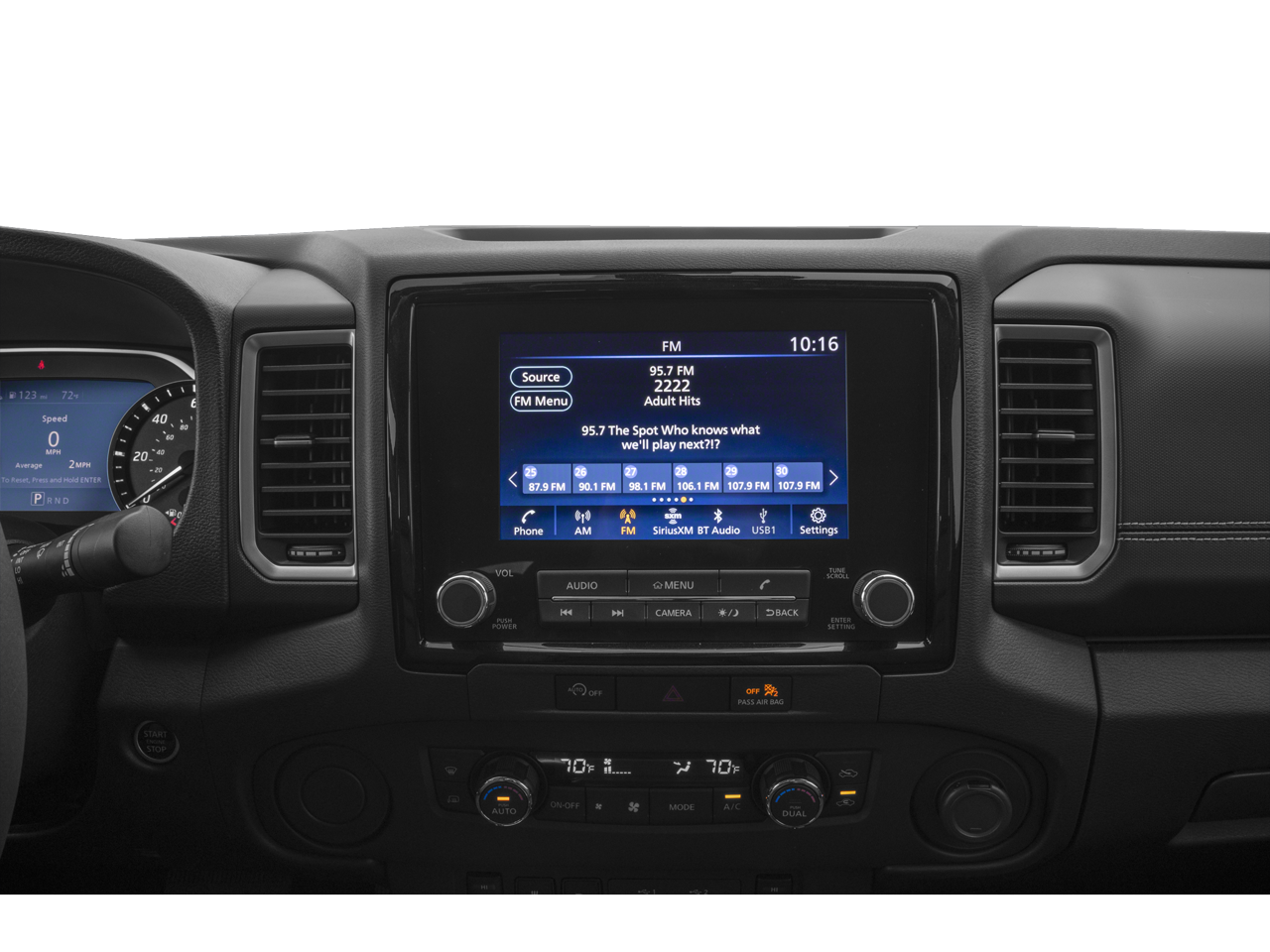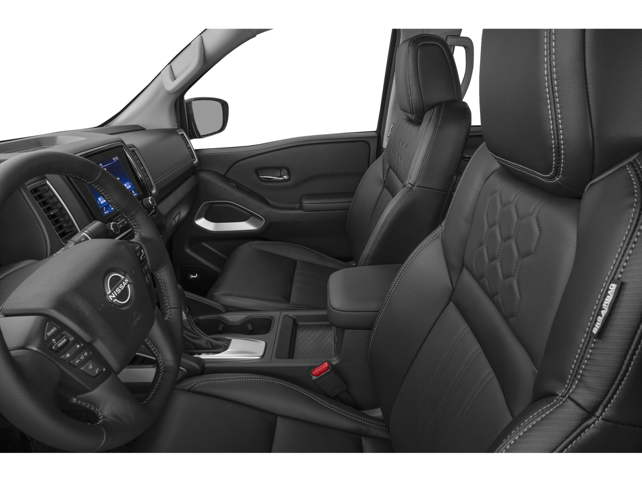 Comfort and convenience are at the forefront of the Frontier SL. Indulge in the heated front seats, the leather-appointed interior, and the power driver's seat, creating a truly luxurious driving environment. The tilt and telescoping steering wheel, along with the steering wheel-mounted audio controls, allow you to customize your driving experience with ease.