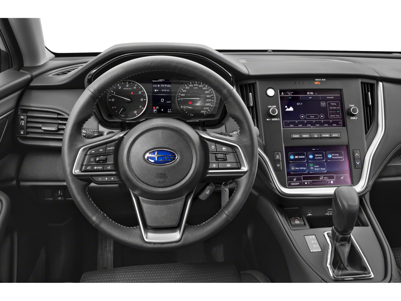 - Radio: Subaru STARLINK Dual 7.0" Multimedia System -inc: AM/FM stereo, HD Radio, multi-touch gesture high resolution display screen, voice activated controls, Bluetooth® audio streaming and hands-free phone connectivity w/SMS text messaging (refer to subaru.com for cell phone compatibility), iPod control capability, SiriusXM Platinum trial (4 months free trial/subscription required after), SiriusXM Travel Link (4 months free trial/subscription required after), smartphone integration: Android Auto, Apple CarPlay and STARLINK cloud applications (refer to subaru.com for app availability), USB audio system update, audio system and Bluetooth® steering wheel control switches, 4 speakers, illuminated 3.5mm auxiliary input jack and illuminated USB-A input/charge port SiriusXM Platinum trial available after launch, possibly October 2023.